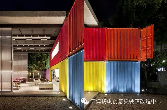座落于巴西圣保罗的小小彩色集装箱建筑Decameron家具展厅,由著名的mk27建筑事务所完成,建筑同时满足了低成本和快速建造的需求,也使未来建筑的可变动性成为可能.虽然是一座工业感混杂波普美学的实验性建筑,但在其室内空间与中庭花园、开敞空间与私密空间等设计理念上依旧流露出浓郁的当地传统建筑意蕴。